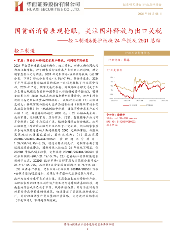 【华西证券】【20250508】轻工制造&美护行业板块24年报及25Q1总结-12页 证券期货研究报告