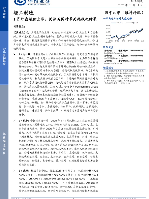 【华福证券】【202601】1月外盘浆价上涨,关注美国对等关税裁决结果-20页 证券期货研究报告