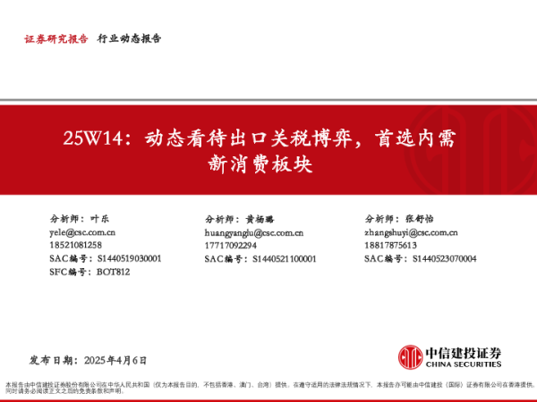 【中信建投证券】【20250406】消费行业25W14:动态看待出口关税博弈,首选内需新消费板块-54页 证券期货研究报告