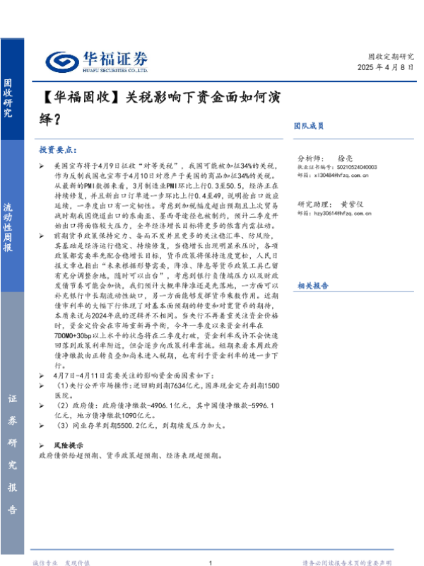 【华福证券】【20250408】关税影响下资金面如何演绎?-15页 证券期货研究报告