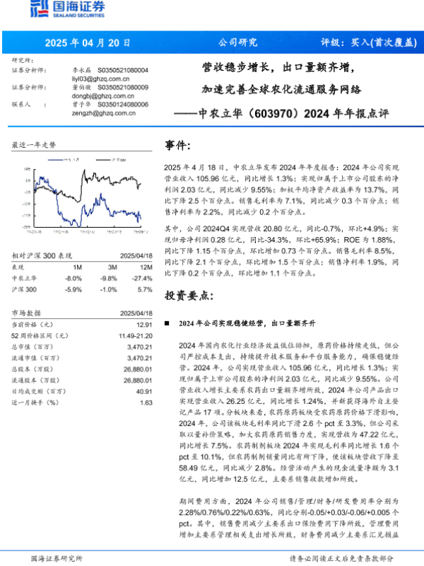 【国海证券】【20250420】中农立华(603970)2024年年报点评-11页 公司研究