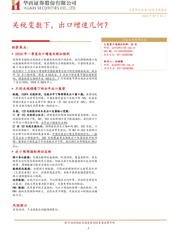 【华西证券】【202603】关税变数下,出口增速几何?-14页 证券期货研究报告