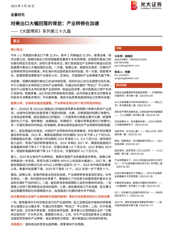 【光大证券】【20230329】对美出口大幅回落的背后:产业转移在加速-18页 行业研究