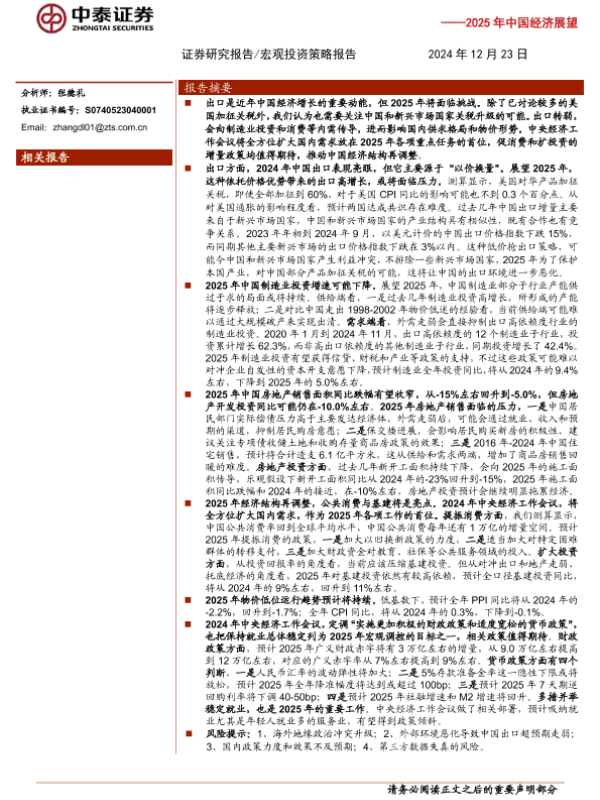 【中泰证券】【20241223】2025年中国经济展望:聚焦最终需求-25页 行业研究