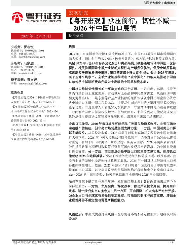 【粤开证券】【202512】承压前行,韧性不减——2026年中国出口展望-11页 证券期货研究报告