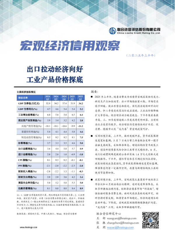 【联合资信】【20250731】宏观经济信用观察(二零二五年上半年)-17页 宏观策略