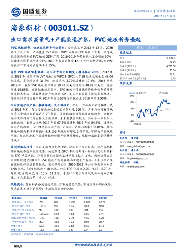 【国盛证券】【20201130】出口需求高景气+产能渠道扩张,PVC地板新秀崛起-24页 行业研究