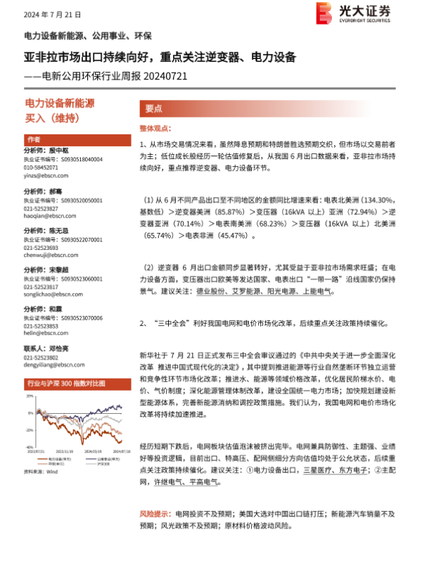 【光大证券】【20240721】电新公用环保行业周报:亚非拉市场出口持续向好,重点关注逆变器、电力设备-11页 行业研究
