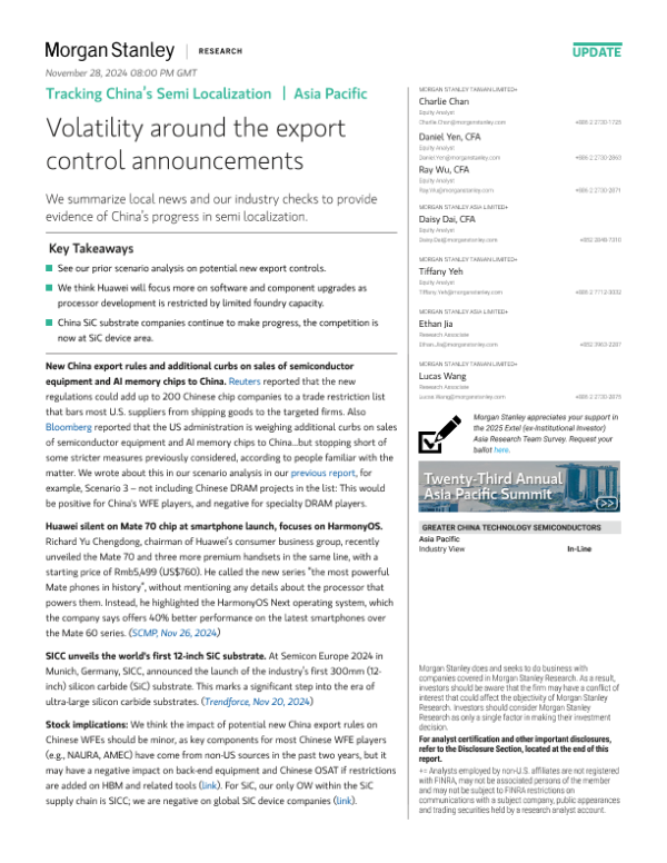 【Morgan Stanley】【202411】Tracking China’s Semi Localization Volatility around the export control announcements-18页 行业研究