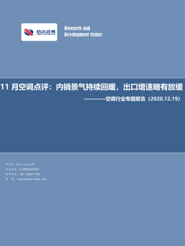 【信达证券】【20201219】11月空调点评:内销景气持续回暖,出口增速略有放缓-10页 行业研究