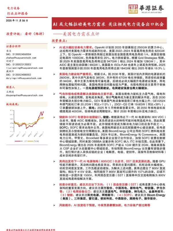 【华源证券】【202511】美国电力需求点评:AI或大幅拉动美电力需求 关注相关电力设备出口机会-2页 证券期货研究报告
