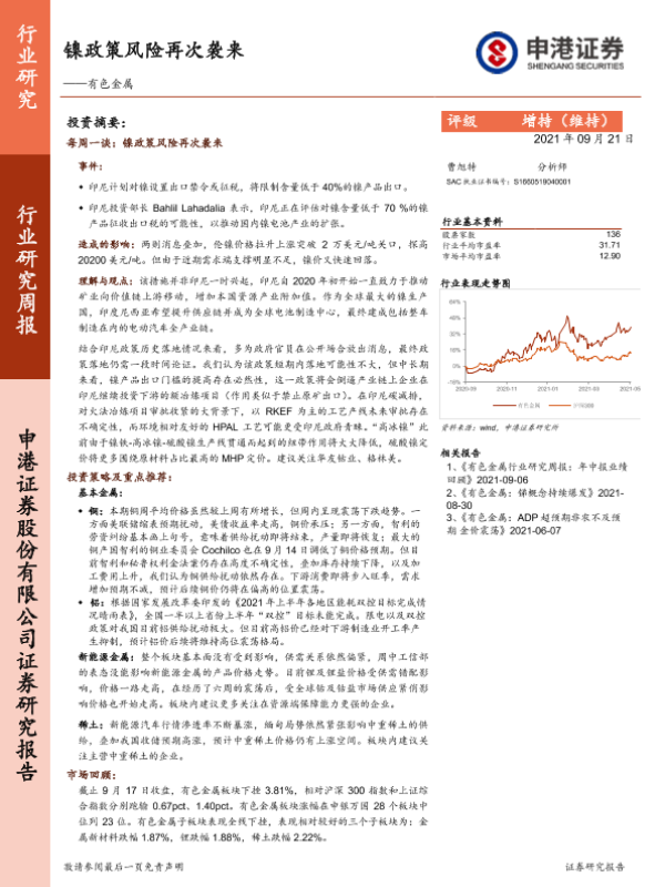 【申港证券】【20210921】20210921-申港证券-有色金属行业研究周报:镍政策风险再次袭来-16页 行业研究