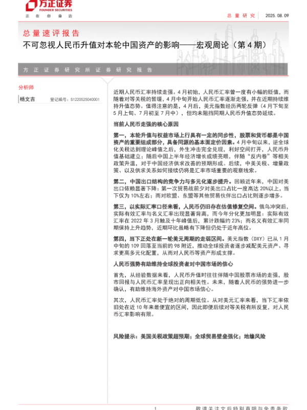 【方正证券】【20250809】不可忽视人民币升值对本轮中国资产的影响—宏观周论(第4期)-6页 宏观策略