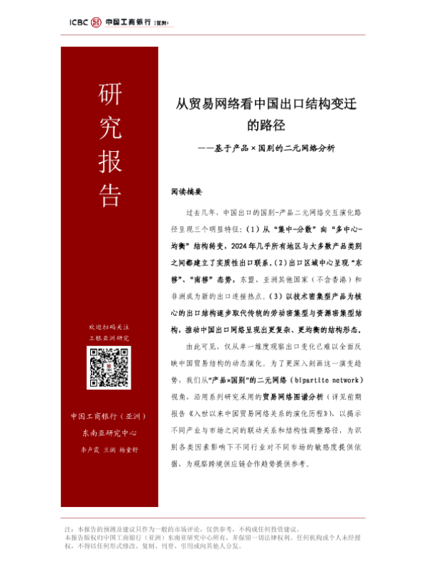 【中国工商银行(亚洲)东南亚研究中心】【2024】从贸易网络看中国出口结构变迁的路径——基于产品×国别的二元网络分析-15页 行业研究