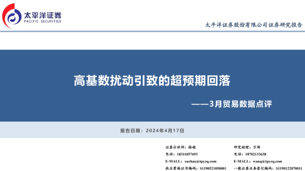 【太平洋证券】【20240417】3月贸易数据点评:高基数扰动引致的超预期回落-12页 行业研究