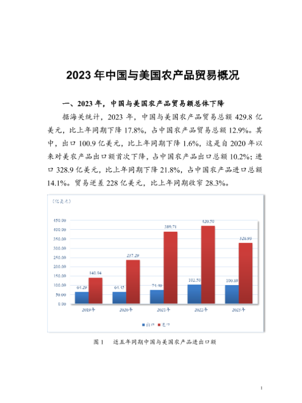 【中国食品土畜进出口商会】【20241022】2023年中国与美国农产品贸易概况报告-7页 行业研究