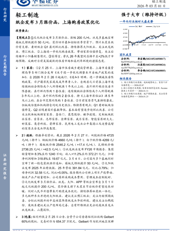 【华福证券】【202603】轻工制造行业定期报告:纸企发布3月涨价函,上海购房政策优化-21页 证券期货研究报告
