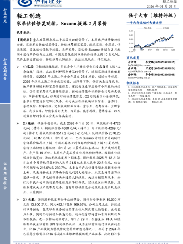 【华福证券】【202601】家居估值修复延续,Suzano提涨2月浆价-20页 证券期货研究报告