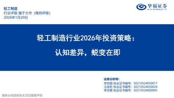 【华福证券】【202601】轻工制造行业2026年投资策略:认知差异,蜕变在即-52页 证券期货研究报告
