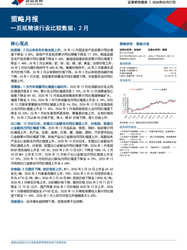 【国信证券】【202602】策略月报:一页纸精读行业比较数据:2月-6页 证券期货研究报告
