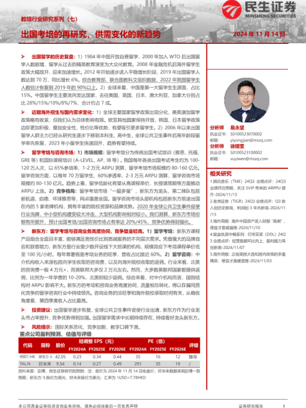 【民生证券】【20241114】教培行业研究系列(七):出国考培的再研究供需变化的新趋势-34页 行业研究