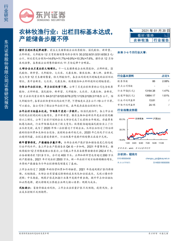【东兴证券】【20210120】农林牧渔行业:出栏目标基本达成,产能储备步履不停-11页 行业研究