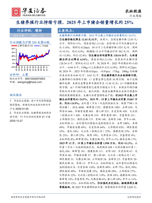 【华安证券】【202601】生猪养殖行业持续亏损,2025年上市猪企销量增长约25%-40页 行业研究