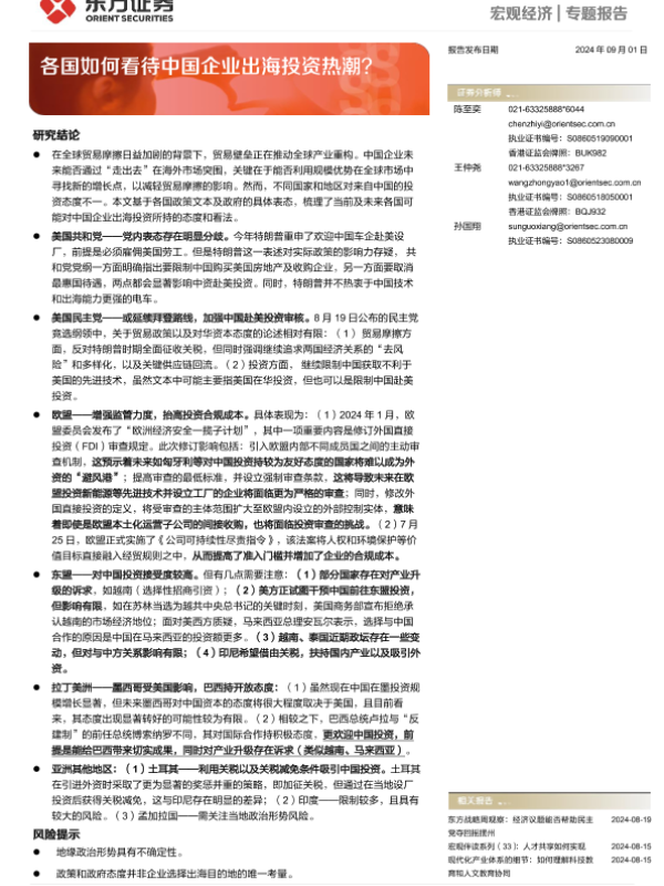 【东方证券】【20240901】宏观经济专题报告:各国如何看待中国企业出海投资热潮?-22页 行业研究