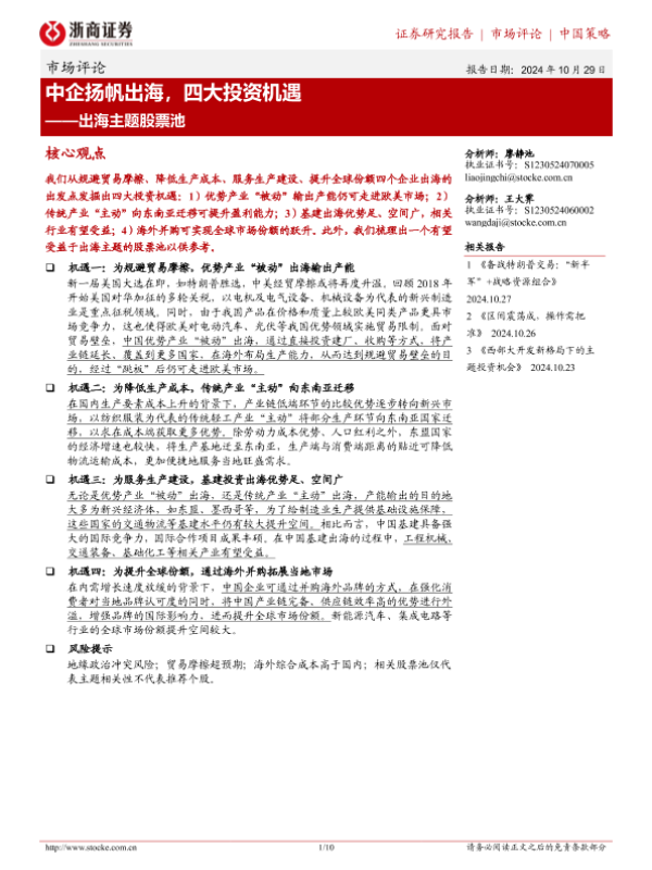 【浙商证券】【20241029】出海主题股票池:中企扬帆出海,四大投资机遇-10页 行业研究