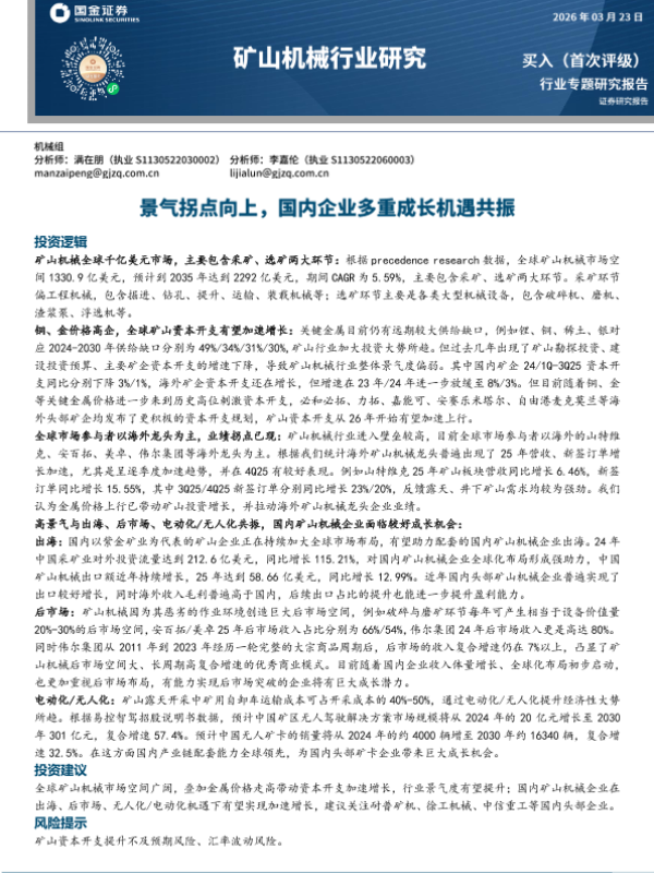 【国金证券】【202503】矿山机械行业研究:景气拐点向上,国内企业多重成长机遇共振-71页 证券期货研究报告