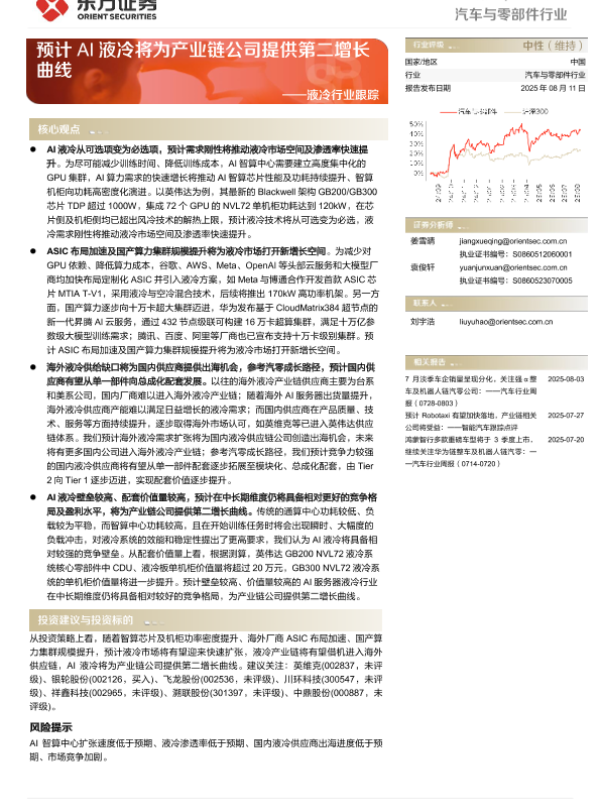 【东方证券】【20250811】东方证券-液冷行业跟踪:预计AI液冷将为产业链公司提供第二增长曲线-3页 行业研究