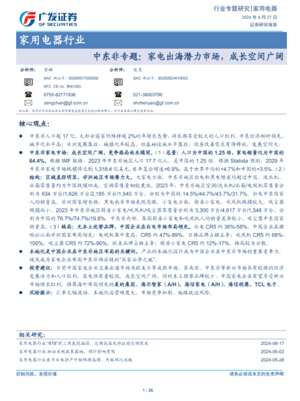 【广发证券】【20240627】家用电器行业中东非专题:家电出海潜力市场,成长空间广阔-26页 行业研究