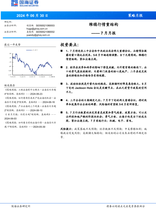 【国海证券】【20240630】7月月报:维稳行情重结构-19页 行业研究