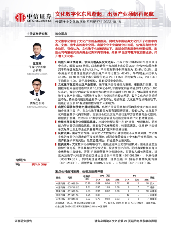 【中信证券】【20221018】文化数字化东风渐起,出版产业扬帆再起航-27页 行业研究