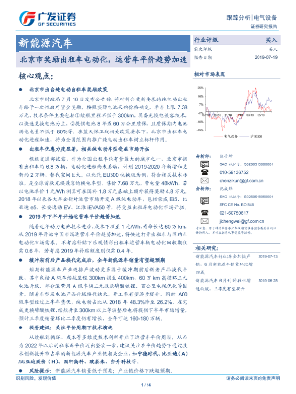 【广发证券】【20190719】北京市奖励出租车电动化,运营车平价趋势加速-14页 行业研究