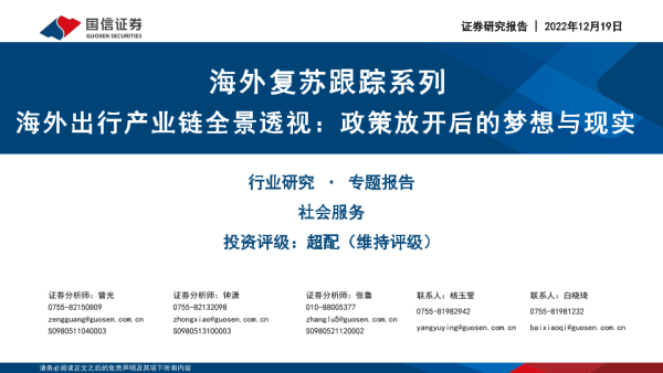 【国信证券】【20221219】社会服务专题报告:海外复苏跟踪系列-海外出行产业链全景透视:政策放开后的梦想与现实-36页 行业研究