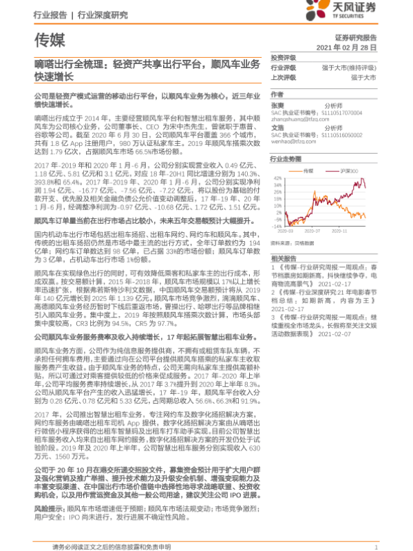 【天风证券】【20210228】传媒行业:嘀嗒出行全梳理:轻资产共享出行平台,顺风车业务快速增长-33页 行业研究