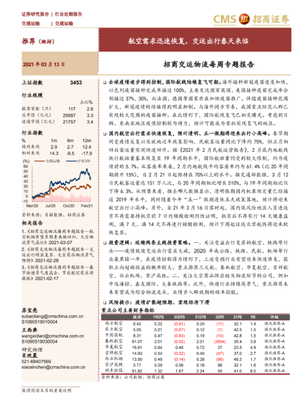 【海通证券】【20210313】航空需求迅速恢复,交运出行春天来临-26页 行业研究