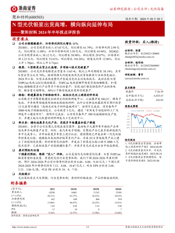 【浙商证券】【20240909】聚和材料2024年半年报点评报告_N型光伏银浆出货高增_横向纵向延伸布局-3页 行业研究