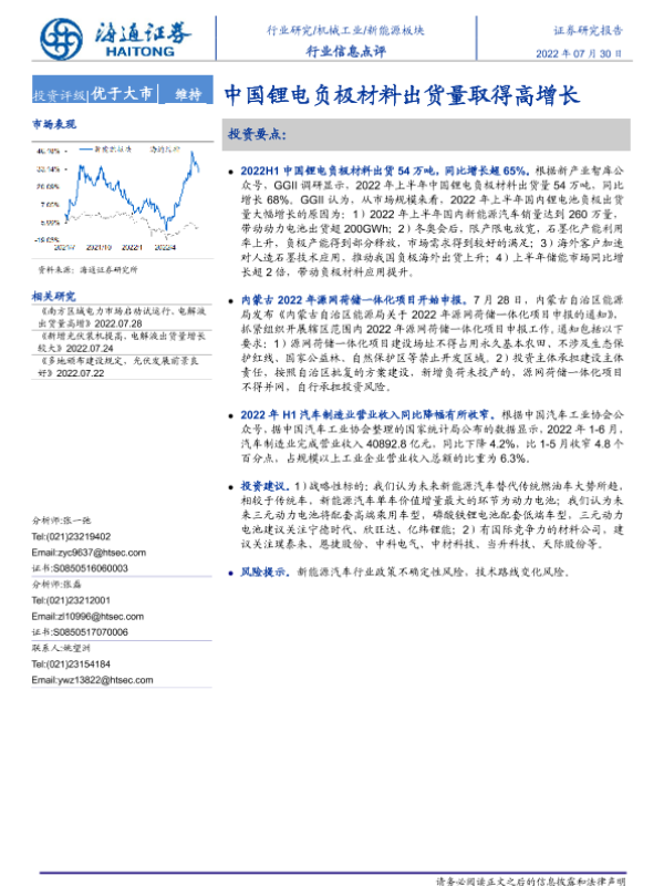 【海通证券】【20220730】中国锂电负极材料出货量取得高增长-2页 行业研究