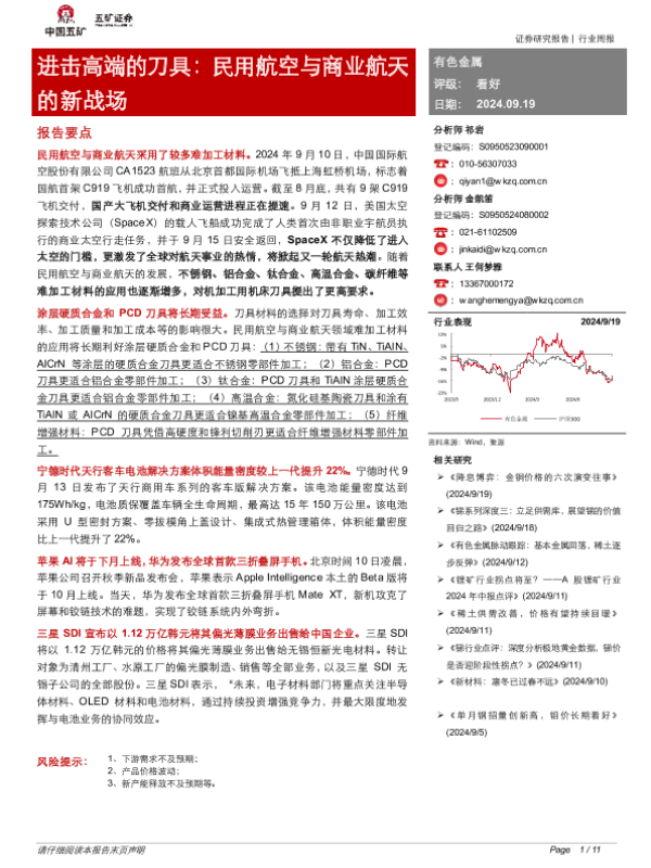 【五矿证券】【20240919】有色金属行业进击高端的刀具:民用航空与商业航天的新战场-11页 行业研究