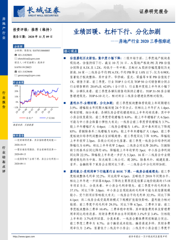【长城证券】【20201109】房地产行业2020三季报综述-17页 行业研究