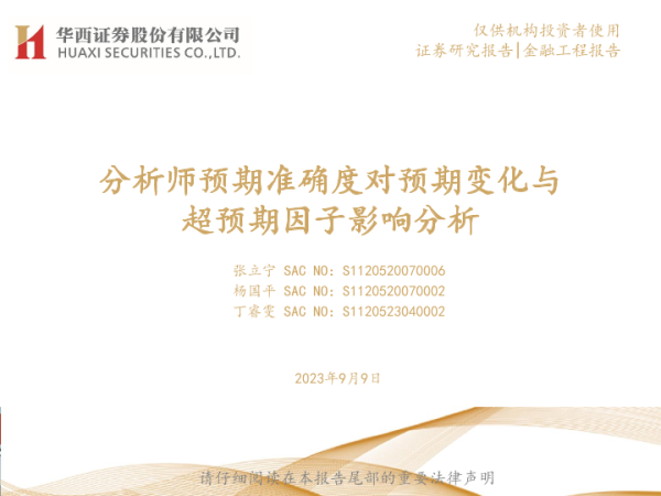 【华西证券】【20230909】分析师预期准确度对预期变化与超预期因子影响分析-36页 行业研究