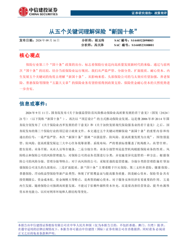 【中信建投证券】【20240916】从五个关键词理解保险“新国十条”-16页 行业研究