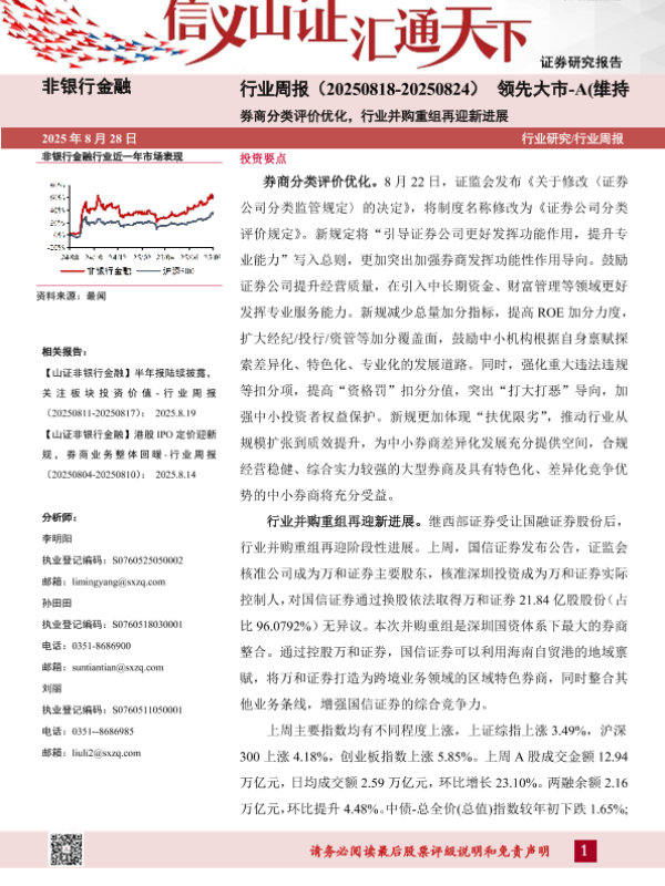 【山西证券】【20250828】非银行金融行业周报:券商分类评价优化,行业并购重组再迎新进展-11页 证券期货研究报告