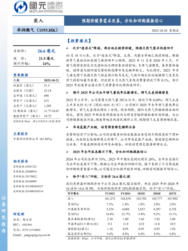 【国元国际】【202510】预期供暖季需求改善,分红和回购提振信心-5页 证券期货研究报告
