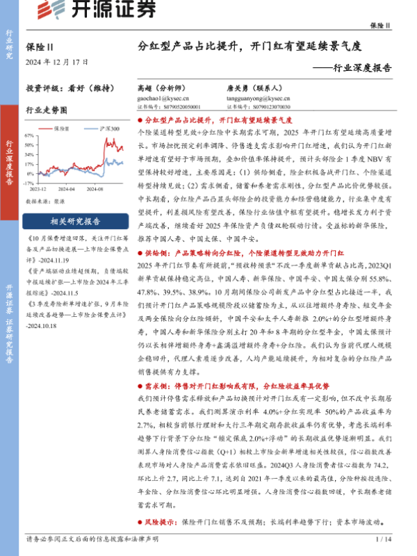【开源证券】【20241217】保险Ⅱ行业深度报告:分红型产品占比提升,开门红有望延续景气度-14页 行业研究