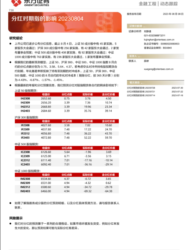 【东方证券】【20230818】金融工程动态跟踪:分红对期指的影响-15页 行业研究