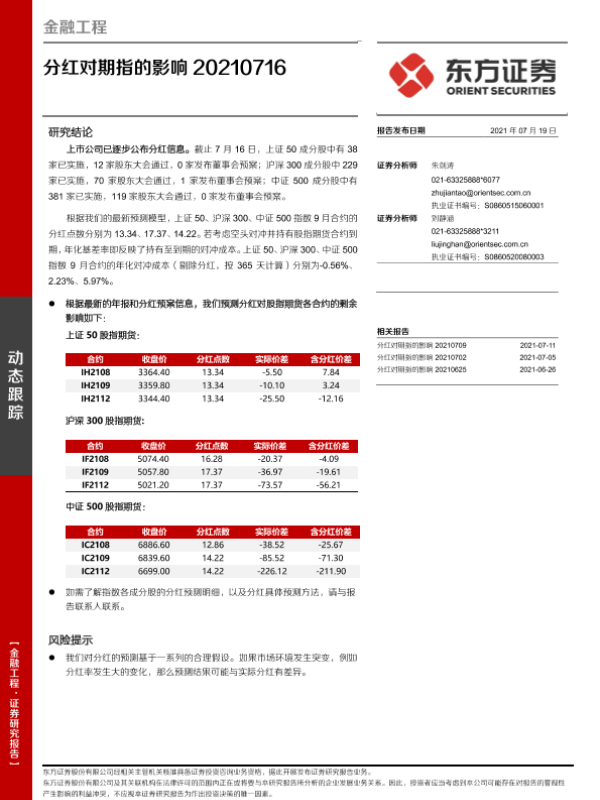【东方证券】【20210719】金融工程:分红对期指的影响-16页 行业研究
