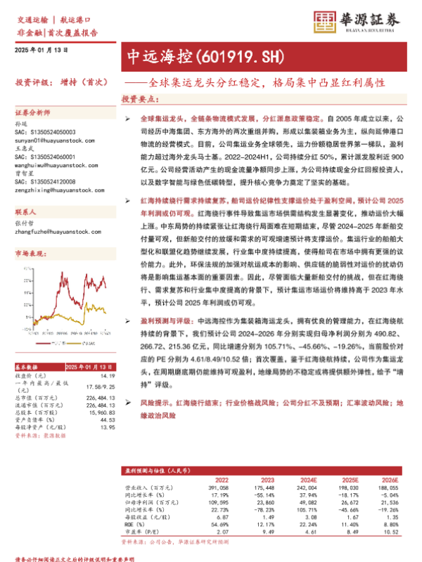 【华源证券】【20250113】中远海控-全球集运龙头分红稳定,格局集中凸显红利属性-25页 行业研究